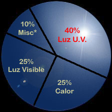 solar, mas del 80% de los rayos UV, la luz infrarroja y luz visible